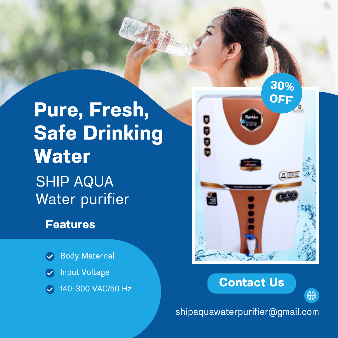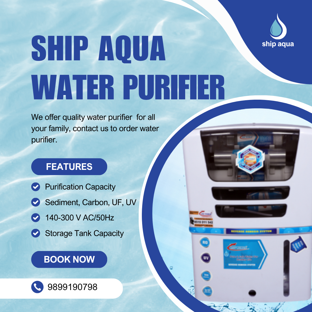 Ship Aqua RO Water Purifier provides pure, safe, and healthy drinking water with advanced RO+UV+UF purification and TDS control. Designed for convenience, it features a durable body, smart indicators, and a 12L storage tank — perfect for every home. 💧